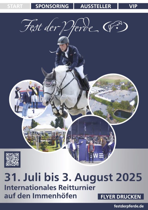 Werden Sie Partner beim Fest der Pferde und präsentieren Sie Ihr Unternehmen! Hier finden Sie unseren Sponsorenflyer mit verschiedenen Werbemöglichkeiten. Gerne entwickeln wir auch gemeinsam mit Ihnen ein passendes Konzept, sprechen Sie uns einfach an!